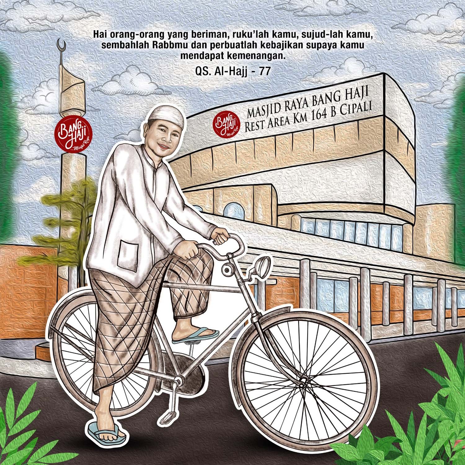 Masjid Raya Bang Haji Adalah sebuah maha karya yang dipersembahkan bagi kaum musafir yang melintas di Tol Cipali untuk bisa menjalankan ibadah shalat dan beristirahat sejenak sehingga mendapatkan kembali energi positif menuju tempat tujuan..